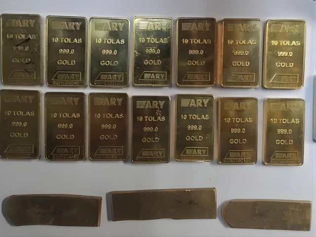 According to the All-Pakistan Gems and Jewellers Sarafa Association (APGJSA), the price of 24-karat gold per tola increased by Rs2,300, settling at Rs493,162. The price of 10 grams of gold also saw an upward movement, rising by Rs1,971 to reach Rs422,806.