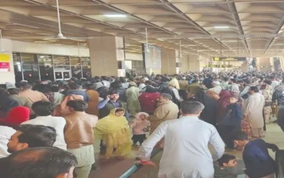 Pakistani pilgrims evacuated from Iran walk across the Pakistan-Iran border at Taftan, in Balochistan province on June 18, 2025. Photo: AFP