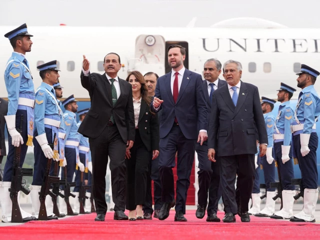The US delegation was received by Deputy Prime Minister and Foreign Minister Ishaq Dar, Chief of Defence Forces and Chief of Army Staff Field Marshal Asim Munir, and Interior Minister Mohsin Naqvi upon arrival, according to the Ministry of Foreign Affairs. US Chargé d’Affaires Natalie Baker was also present to receive the vice president.